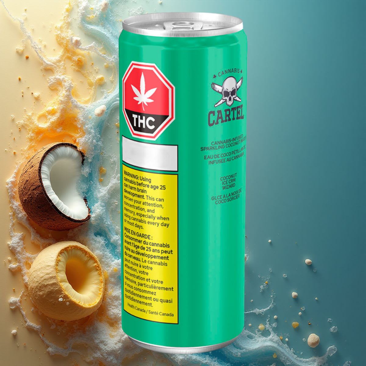 Delicious sparkling coconut water infused with 10 mg of THC and 10 mg of CBG. Coconut Ice Crm Wizard is a beverage that complements Cannabis Cartel’s Ice Crm Wizard flower. In each can, we have paired the flower’s unique creamy flavours with real coconut water sourced from the Caribbean. Best served cold.